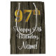 Este na moda, elegante e luxuoso design de saco-presente de aniversário apresenta um grande número ordinal "97", com um visual falsa/imitado inspirado em ouro, além da mensagem de saudação de aniversário "Feliz 97.º Aniversário", e um nome de destinatário editável em uma fonte estilo script. Também tem um padrão de fundo falsa inspirado em madeira. Um presente temático de aniversário como este pode ser uma maneira divertida de embrulhar um presente ou presente para alguém que comemora seu 90° aniversário. [~Z0000520]