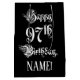 Este design de presente de aniversário formal e generoso apresenta a mensagem "Feliz 97º Aniversário," no texto do estilo do script do ornamentado, num fundo de cor preta. Também tem um nome de destinatário personalizado. Um saco de presente temático de aniversário como este pode ser usado para dar um presente ou presente em comemoração do 90° aniversário de alguém. [~Z0000557]