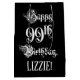 Este rico de sacola de presente com o tema de aniversário e profundo apresenta a mensagem "Feliz 99º Aniversário," em texto elegante com estilo de escrita, num fundo de cor preta. Também tem um nome de destinatário personalizado. Uma bolsa de presente formal como esta pode ser usada para dar um presente ou presente em homenagem ao 99º aniversário de alguém. [~Z0000557]