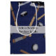 Saco lustroso médio do presente com uma imagem da engrenagem do hóquei na flanela azul. A fita cinzenta tem o texto customizável que lê a "vida é hóquei. O hóquei é vida." See que combina o grande saco do presente. Veja a coleção inteira do saco do presente do dia dos pais na seção ESPECIAL dos favoritos para festas dos TOQUES |.