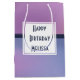 Uma bolsa de presente de aniversário com um na moda moderno. Cores cor-de-rosa e roxo girando em torno de criar um efeito elegante de gradiente. Um quadrado em camadas acima com seu dentro de texto.