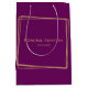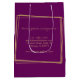 Um design elegante e moderno eleva seu nome ou nome comercial através de um estilo mínimo e refinado. Os quadros de folhas de ouro digitais estão baseados em fundo roxo para dar uma sensação de luxo a este design clássico de sacos de papel abstrato.