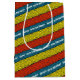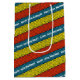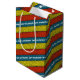 Adicione o aniversariante ou a idade da menina a esta bolsa colorida de presentes com uma reviravolta moderna numa banda Celta. Use "Personalizar esta modelo" para ajustar o texto "aniversário de 30 anos Feliz!" para a sua idade e mensagem preferidas. O texto branco se posiciona sobre faixas de vermelho, amarelo e azul sobre um azul escuro.