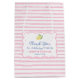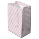Agradeça aos seus convidados por virem com essas lindas sacolas de lembrancinhas rosa que apresentam um fundo listrado rosa e branco e uma borda de linha ondulada. A cor de contraste das listras (atualmente um rosa médio) pode ser personalizada por você, assim como todas as cores e posições do texto. Você também pode adicionar ou excluir caixas de texto dentro da ferramenta de design.
