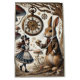 Entra numa maravilhosa maravilha, com esta ilustração encantadora de Alice no País das Maravilhas. O coelho branco, estilo vitoriano, mantém o seu teacup com o devido equilíbrio, enquanto Alice no seu icônico vestido azul sonha com aventura. Cogumelos místicos fazem a cena, e uma fascinante árvore de relógios carrega um misterioso relógio de bolso - o tempo é sempre a essência da Terra Maravilha! Perfeito para berçários, quartos para crianças, ou qualquer espaço que precise de um toque de encanto mágico. Este trabalho de arte delicioso captura a essência da adorada história com seus detalhados elementos inspirados no galo e sua atmosfera sonhadora.
