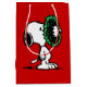 Celebre as férias e o seu amor por amendoins com esta design bonitinha de 1980 com Snoopy decorado para o Natal com uma coroa.