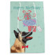 Feliz aniversário com este design bonitinho apresentando um sorridente Malinois belga equilibrando uma pilha de presentes de aniversário em seu nariz. O texto pode ser facilmente alterado; basta clicar no botão Personalizar.