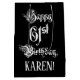 Este design de sacola de presente temático e rico de aniversário árduo apresenta a mensagem "Feliz aniversário de 61ruas," no texto formal do estilo do script, em um fundo de cor preta. Ele também apresenta um nome de destinatário editável. Um saco de presentes como este pode ser uma maneira respeitável de embrulhar um presente de aniversário ou um presente que está sendo dado a alguém que está celebrando seu sessenta aniversário. [~Z0000557]