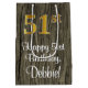 Esta luxuosa, sofisticada e elegante design de gingalô com tema de aniversário apresenta um grande número ordinal "51ruas" com um olhar imitado/falsa inspirado em ouro, além da mensagem de saudação de aniversário "Happy 51rua Birthday" e um nome de destinatário editável em uma fonte estilo script. Também tem um padrão de fundo falsa inspirado em madeira. Um presente de na moda como este pode ser usado ao embrulhar presentes que estão sendo dados a alguém em comemoração de seu aniversário de 51ruas. [~Z0000520]