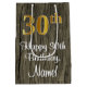 Este design de bolsa de presente de aniversário luxuoso, elegante e sofisticado apresenta um grande número ordinal "30" com um padrão de gradação tipo ouro falso/imitação, juntamente com a mensagem de saudação de aniversário "Happy aniversário de 30 anos", e um nome de destinatário personalizado em uma fonte estilo script. Também tem um padrão de fundo falsa inspirado em madeira. Um saco de presentes temático de aniversário como este pode ser uma maneira divertida de embrulhar um presente ou presente para celebrar o aniversário de 30 anos de alguém. [~Z0000520]
