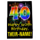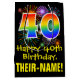 Este design de bolsa de presente colorida, excitante e divertida de aniversário apresenta um grande número "40" com um padrão inspirado no gradiente do espectro arco-íris, juntamente com a mensagem "Happy aniversário de 40 anos," e um nome de destinatário editável. Ele também apresenta um padrão de fundo colorido inspirado pela aparência de fogos de artifício comemorativos que explodem. Um saco de presente temático de aniversário como este pode ser uma maneira divertida de embrulhar um presente ou presentear alguém que está celebrando sua aniversário de 40 anos. [~Z0000509]