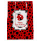Saco de presente de aniversário da ladybug. Personalizado com seu nome e sua idade, dê seu presente em estilo com este saco bonito e elegante.