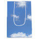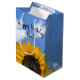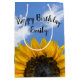 O girassol amarelo-claro a espreitar sobre a borda no céu azul de verão e no fundo das nuvens. O texto pode ser alterado ou excluído.