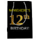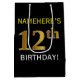 Sacola Para Presentes Média Aniversário do 12 Dourado preto, preto + nome pers