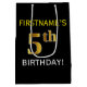 Sacola Para Presentes Média Aniversário do 5 Dourado preto, preto + nome perso