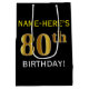 Sacola Para Presentes Média Aniversário do 80 Dourado preto, preto + nome pers