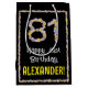 Esta divertida e inspirada em botânica, design de sacola de presente de aniversário apresenta a mensagem "Feliz aniversário de 81ruas", juntamente com um nome de destinatário editável. O grande número "81" e a borda apresentam ícones de flor. Um saco de presentes temáticos de aniversário floral como este pode ser uma maneira divertida de embrulhar um presente ou presente que está sendo dado a alguém que está celebrando seu oitenta e um aniversário. [~Z0000653]