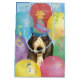 Feliz aniversário com este design bonitinho, com um cachorrinho bonitinho, que veste chapéu de Basset Hound, rodeado de balões coloridos, confetti e streers.