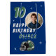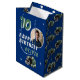 Foto do Cartoon de Capacetes de Futebol, Aniversário, Saco de Presente Médio. Bolsa de presente de aniversário de futebol divertida e moderna. Apresentando uma ilustração ousada de um futebol e capacete em verde e azul. Adicione sua foto, nome e idade.