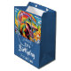 Sacola Para Presentes Média aniversário do dinossauro, azul colorido