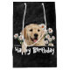 Sacola Para Presentes Média Aniversário Ouro Retriever Em Couro Negro