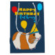 Adicione sua própria mensagem e nome a esta bolsa de presentes para criar um saco especial de presente de aniversário para donos de cobaias. Este saco mostra ilustrações de cobaias vestidas em chapéus de festa com um na frente e outro nas costas, juntamente com alguns balões coloridos de aniversário colocados contra um fundo azul marinho.