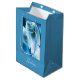 Anjo azul com um brilho majestoso suave ... Embrulhamento de presente facilitado! Excelente para feriados, graduações, casamentos, aniversários, aniversários, aniversários e muito mais. Preencha com seus presentes favoritos...Escolha entre uma variedade de tamanhos de sacos de presentes: pequeno, médio e grande. Com brilho ou matte.