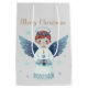 Elegante Anjo Nórdico de Natal segurando uma vela Saco de Presente Médio.
