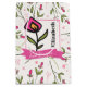 Um saco de presentes com "só para você" escreveu dentro uma fita rosa bonito. Um nome personalizado e um encantador quadro quadrado de dentro de flor rosa com uma borda rosa. O fundo é um padrão com flores silvestres cor-de-rosa desenhadas à mão, com caules longos e folhas verdes sobre um fundo branco de casca-de-ovo. Círculos cor-de-rosa e galhos também decoram o design. Design floral branco e bonito.