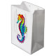 Articulação artificial, brilhante, arco-íris, cavalo de mar poligonal sobre fundo branco. Tatuagem brilhante.
