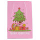 Sacola Para Presentes Média Árvore de Natal Retro Rosa