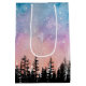 Sacola Para Presentes Média Árvore Feliz de Natal Floresta de Gradação Noite