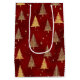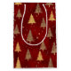 Sacola Para Presentes Média Árvores de Natal Douradas Festivas em Vermelho