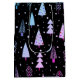 Saco de presente de Natal moderno, com árvores de Natal abstrato e árvores de inverno na neve, roxo multicolorido, rosa e azul, com fundo preto. ASSISTÊNCIA: Para obter ajuda sobre modificação ou personalização do design, alteração de cor, transferência do design para outro produto ou se você quiser coordenar itens, entre em contato com o designer ANTES DE ENCOMENDAR, por meio da guia MENSAGEM de bate-papo Zazzle abaixo ou envie um e-mail para makeitaboutyoustore@gmail.com.