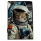 Sacola Para Presentes Média Astronauta de Gato cinza no Espaço Exterior