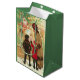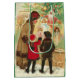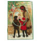 Vintage illustration of a mother with children watching a toy store window, filled with dolls and toys for Christmas.