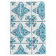 O padrão geométrico versátil tem a aparência de um azulejo azul marroquino/mediterrânico em fundo branco.