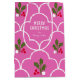 Sacola Para Presentes Média Azulejos de Natal Brilhantes, Rosa