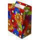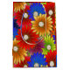 Um saco de presentes ousado e alegre a explodir com margaridas gigantes em brilhantes vermelhos, laranjas, azuis, roxas e verdes. O padrão floral é esboçado com ouro costura para um olhar bordado que é atraente para os olhos e festivo. Perfeito para aniversários, festas de primavera, ou sempre que seu presente precisar chegar em estilo mais alto que uma banda marcial. Alças fortes acrescentam praticidade ao motim da cor.