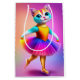 Esta ilustração vibrante e colorida de um gato num tutu arco-íris a dançar traz certamente um sorriso à sua face. Esta trabalho de arte faria um excelente adicional em qualquer casa, e seria especialmente apreciada pelos amantes de gatos.