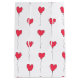 Uma ilustração clara de um balão vermelho desenhado à mão em forma de coração amarrado a uma corda preta sobre um fundo branco