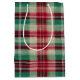 Sacola Para Presentes Média Bandas de Xadrez Vermelhos de Feriado