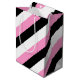 Saco-presente Black, White e Pink Stripes projetado com faixas diagonais de preto, branco e rosa. As faixas podem ser rotacionadas ou endireitadas. Por celeste@khoncepts.com