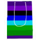 Sacola Para Presentes Média Bandas roxas, pretas, azuis e verdes