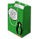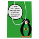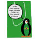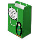 A Sra. Penguin veste orgulhosamente um colete da bandeira brasileira verde, azul, amarela e branca que ganhou enquanto viajava pelo Brasil. Ela a modela com uma bolha de palestra neste saco de presentes médio. Mude as palavras na bolha de palestras e crie uma mensagem para o seu presente. Você pode mudar a cor de fundo para seu gosto pessoal ou tema de festa.