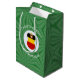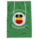 Saco médio de presente com um anjo vestindo a bandeira da Alemanha para decoração de presentes de Natal ou decoração de Natal. O anjo encontra-se dentro um fractal circular branco de quadrados rabugentos. O fundo é um fractal verde de quadrados pretos. Adicione seu próprio texto ou personalize com um nome e o ano. Compartilhe sua herança alemã nesta temporada de festas.
