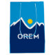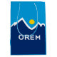 Gift Bag com um design com a bandeira de Orem, Utah. Uma bandeira azul, branca e amarela com picos de montanha e o sol no centro