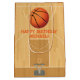 Celebrate your basketball fan's birthday with this cute basketball gift bag. Customize with a name for a unique wrapping experience! Bag features a basketball court background with a large basketball image and the text Happy Birthday Name