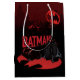 Este gráfico atmosférico captura Batman firme sob um céu vermelho-sangue, uma imagem icônica e poderosa da vigilância. A cena é banhada num tom vermelho monocromático, destacado pelo forte contraste da silhueta de Batman contra o pano de fundo vibrante. O Bat-Signal está distorcido e fragmentado no céu, sugerindo o estado caótico de Gotham, enquanto a chuva cai fortemente, acrescentando um senso de urgência e de vanguarda à cena. Morcegos caem no céu tempestuoso, simbolizando os constantes companheiros de Batman no seu interminável relógio noturno. A ousada inscrição "BATMAN" na primeira linha ancora a composição, enfatizando o papel central do Cavaleiro Negro na luta contra o crime. Esta peça transmite a fúria, a determinação, e o sentido de perigo sempre presente que Batman enfrenta em seu relógio incessante sobre Gotham City.