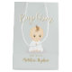 Este bebê bonito e doce é perfeito para o baptismo da sua criança. O design consiste em um bebê doce que veste um jumpsuit branco, babador branco com uma cruz do ouro. A cor do fundo é um azul de pó delicado. Verifique para fora os acessórios, os presentes, os favoritos para festas e os artigos de papelaria de harmonização.